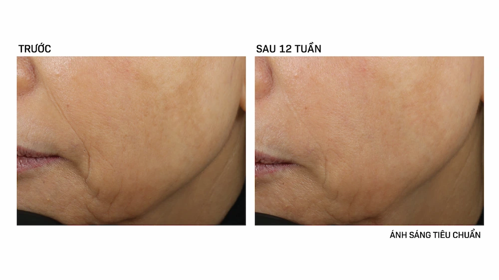 • Giảm rõ rệt các rãnh nhăn và nếp nhăn, đồng thời cải thiện kết cấu da